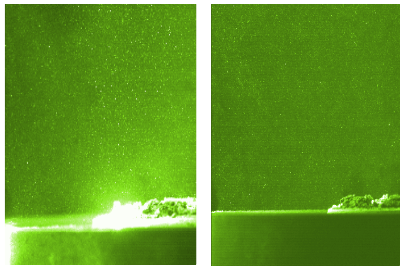 图3b) 从左侧相机查看被点燃喷雾的透视图