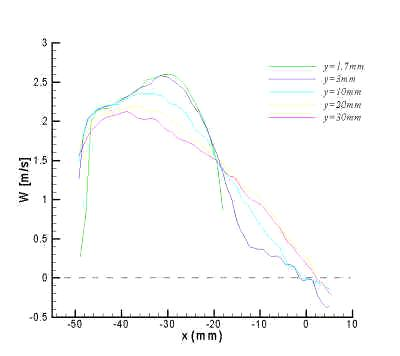 图6a、6b、6c(上、中、下)显示了在环形出口上方几个高度处的速度分量分布