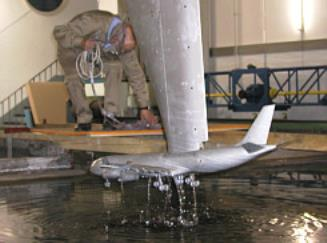 在C-Wake研究计划中,使用Airbus A340(该飞机已经投入使用多年)的水下模型在Hamburgische Schiffbau-Versuchsanstalt (HSVA)的船模实验池中进行了一些实验。
