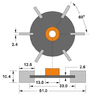 使用三个Rushton涡轮机,每个涡轮机具有六个矩形径向叶片,以搅动流动。Rushton涡轮机沿着容器的高度等距间隔,高度间隔为60mm,最低的Rushton涡轮机位于距离油箱底部60 mm的高度,中间轴的高度为255 mm,直径为8mm。