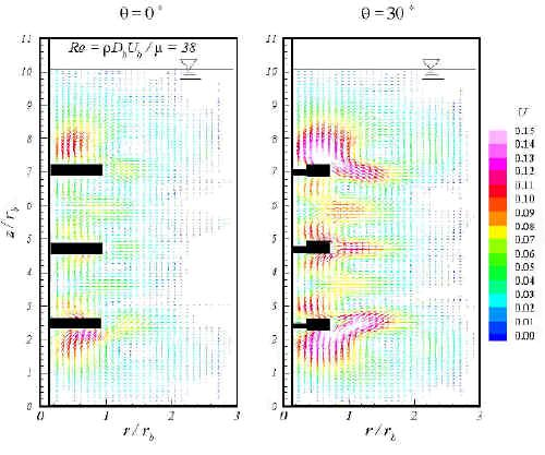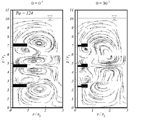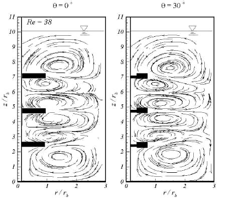 测量在两个旋转速度,175RPM和575RPM下进行,对应于雷诺数38和124