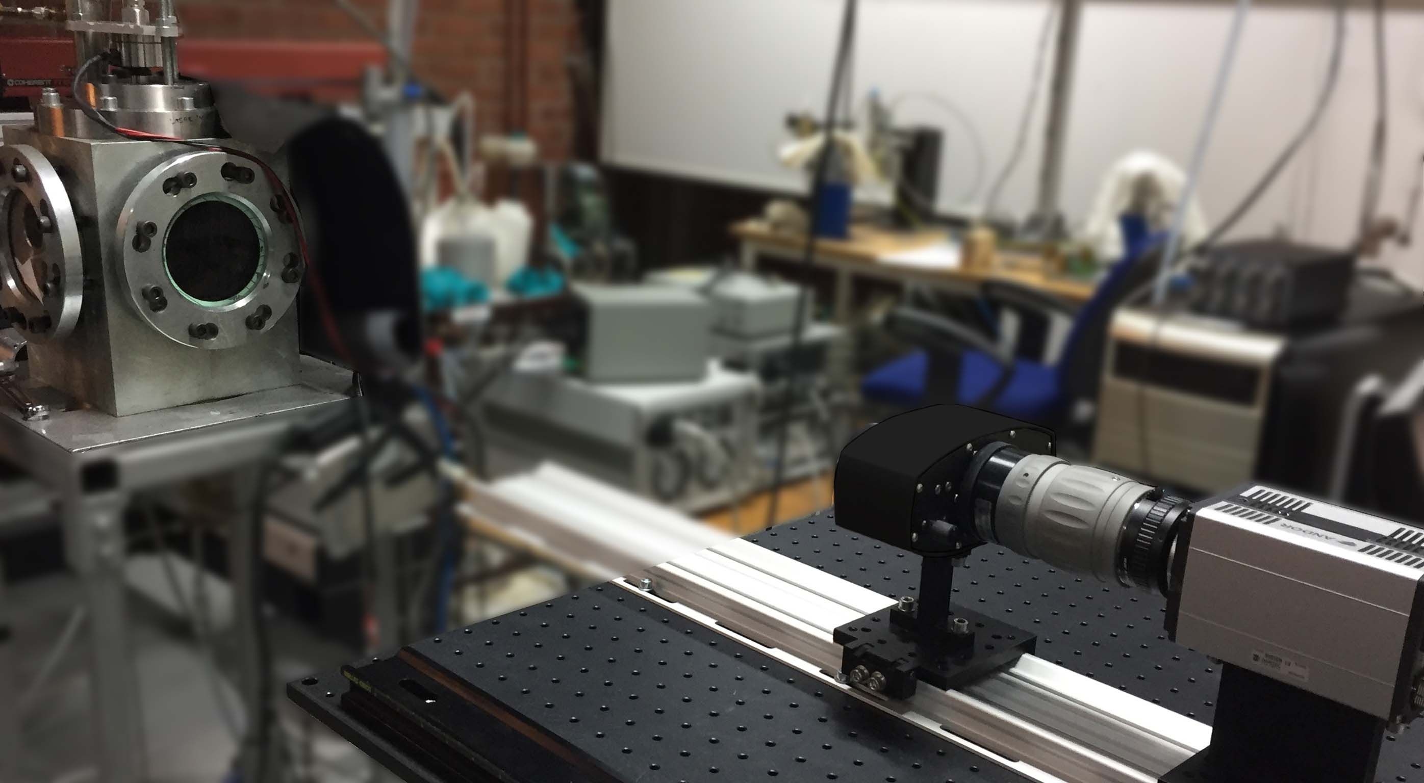 图2. 实验设备图,喷雾被喷射进入左侧的恒体积室中