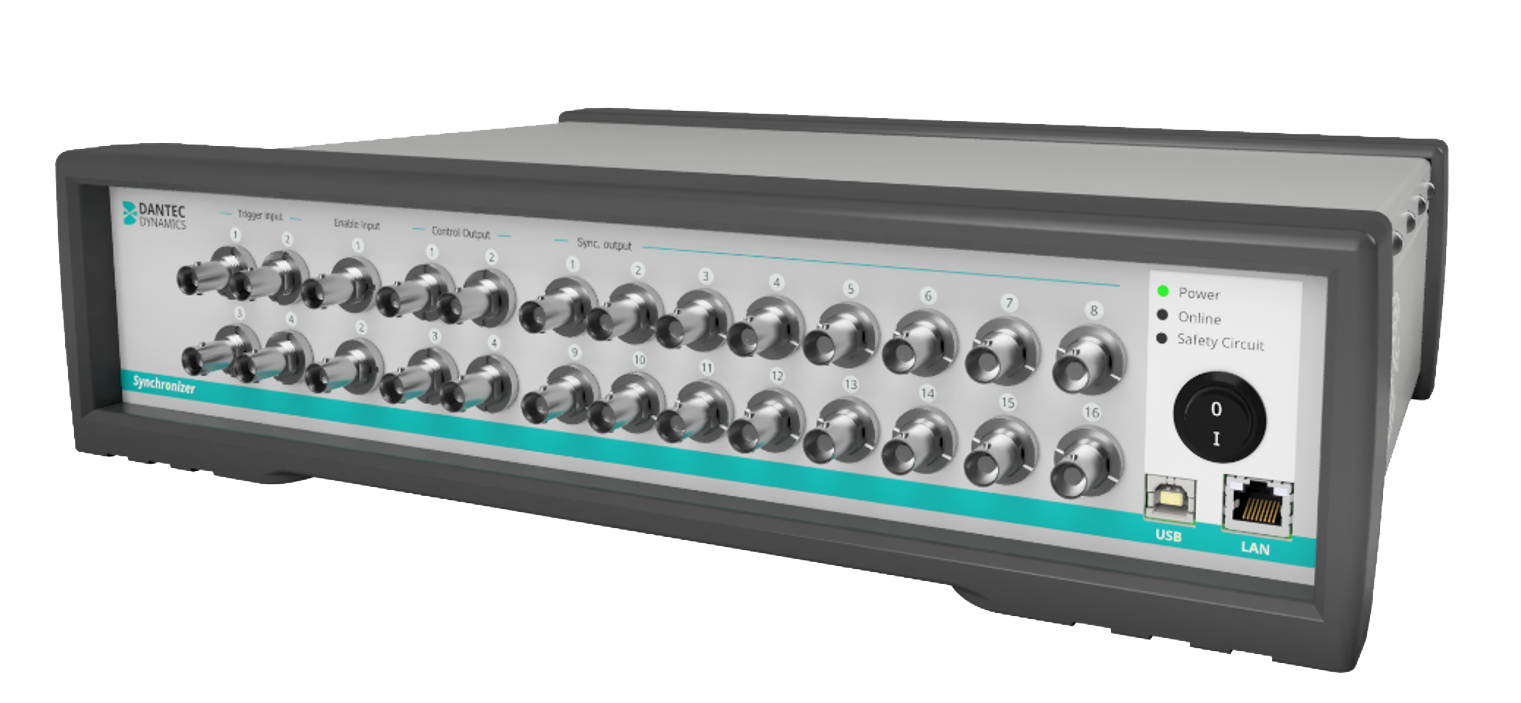 使用Dantec Dynamics公司的新同步器,很容易实现相机、激光器和像增强器等部件不同工作时序的需求。在高速流动测量应用中,可通过记录精确的激光脉冲时间(分辨率1ns)来修正跨帧时间,提高了PIV的测量精度。此外,该同步器还可以产生复杂的纳秒精度的脉冲序列,实现PIV和LIF的同步测量。