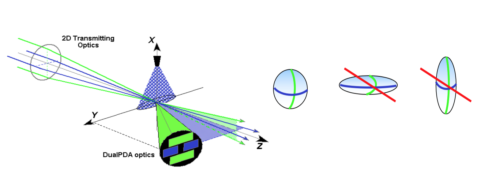 DualPDA探测器结构(两个标准探测器和两个平面探测器)结合了更加精准的验证装置,对粒子所在的两个空间维度进行独立的尺寸测量,消除了由于轨道效应或信号光高斯分布造成的尺寸测量误差。