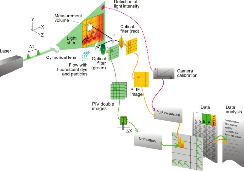 平面激光诱导荧光(PLIF)是一种光学测量技术,用于测量液体和气体流动中瞬时的全场浓度分布或温度分布。
