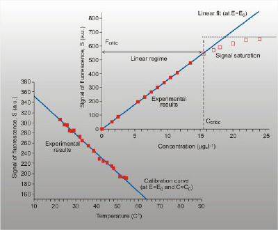 在荧光信号检测时,使用带有截止滤光片或窄带滤光片的相机,以便只记录荧光。荧光信号的强度随浓度、温度和其它几个实验参数而变化。