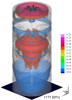 1kHz采样频率的高频PIV用于获取沿着一个三叶轮搅拌槽内竖直平面上的粒子图像数据。