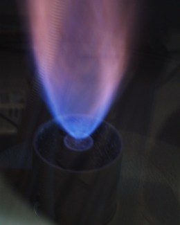 为了满足喷雾燃烧领域的验证需求,美国国家标准与技术研究院(NIST)的喷雾燃烧装置已经建立并得到了广泛的认可。图1中示出了火焰的照片。燃料从圆柱形钝头体中心的喷射器喷射,并且流出钝头体周围的环形空间的逆时针旋转气流用于稳定火焰。